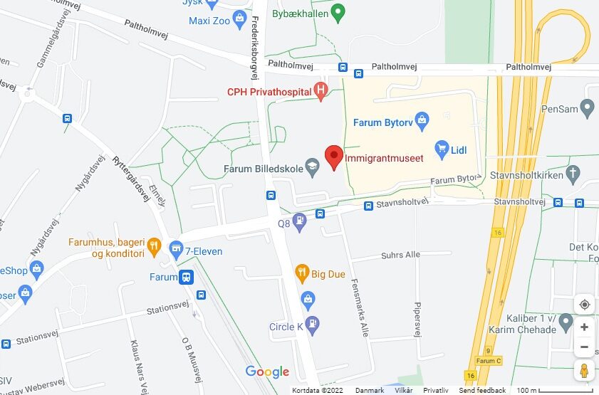 Immigrantmuseet ligger i Farum Kulturhus på adressen:
